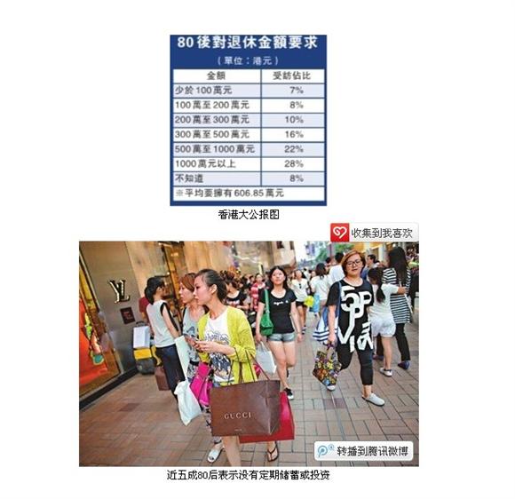 据香港《大公报》报道,摩根资产管理一项调查显示,香港受访的80后(年龄介乎20至29岁)均希望自己能在33岁赚到首个100万元,55岁便能够退休,同时认为需要600万元才能保障无忧无虑地退休。