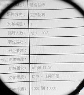 而对于求职者林小姐质疑的正规性问题,那位不愿意透露名字的足浴技师表示,目前厦门足浴企业有几十家,这些足浴企业有的比较规范,有的比较不好说。一般比较大型的也相对比较正规,但求职者一定要在求职的时候多做一些了解。