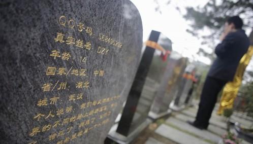 武汉石门峰名人文化园内,环保葬区部分墓志铭上留有QQ号码和空间链接,数年间仍有人进空间留言。