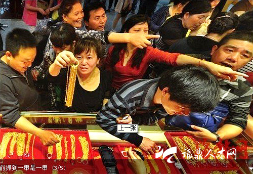 普通市场每次只卖几克或几十克,批发市场则论斤买卖。“究竟最近有多少人买黄金,你到批发市场看下多少人在补货就知道了。”昨天,福州多家珠宝店负责销售的人这样说。