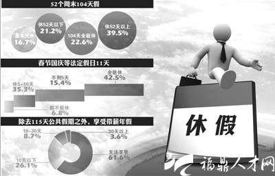 2013年,调查“你一年能休几天假”结果显示,超六成人无法享受年假。CFP