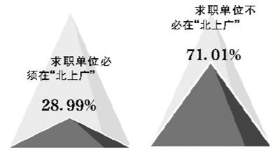 新京报近日调查清华大学、浙江大学、北京工商大学等各地高校的数据也显示,仅有约三成的应届生表示“非北上广不去”。