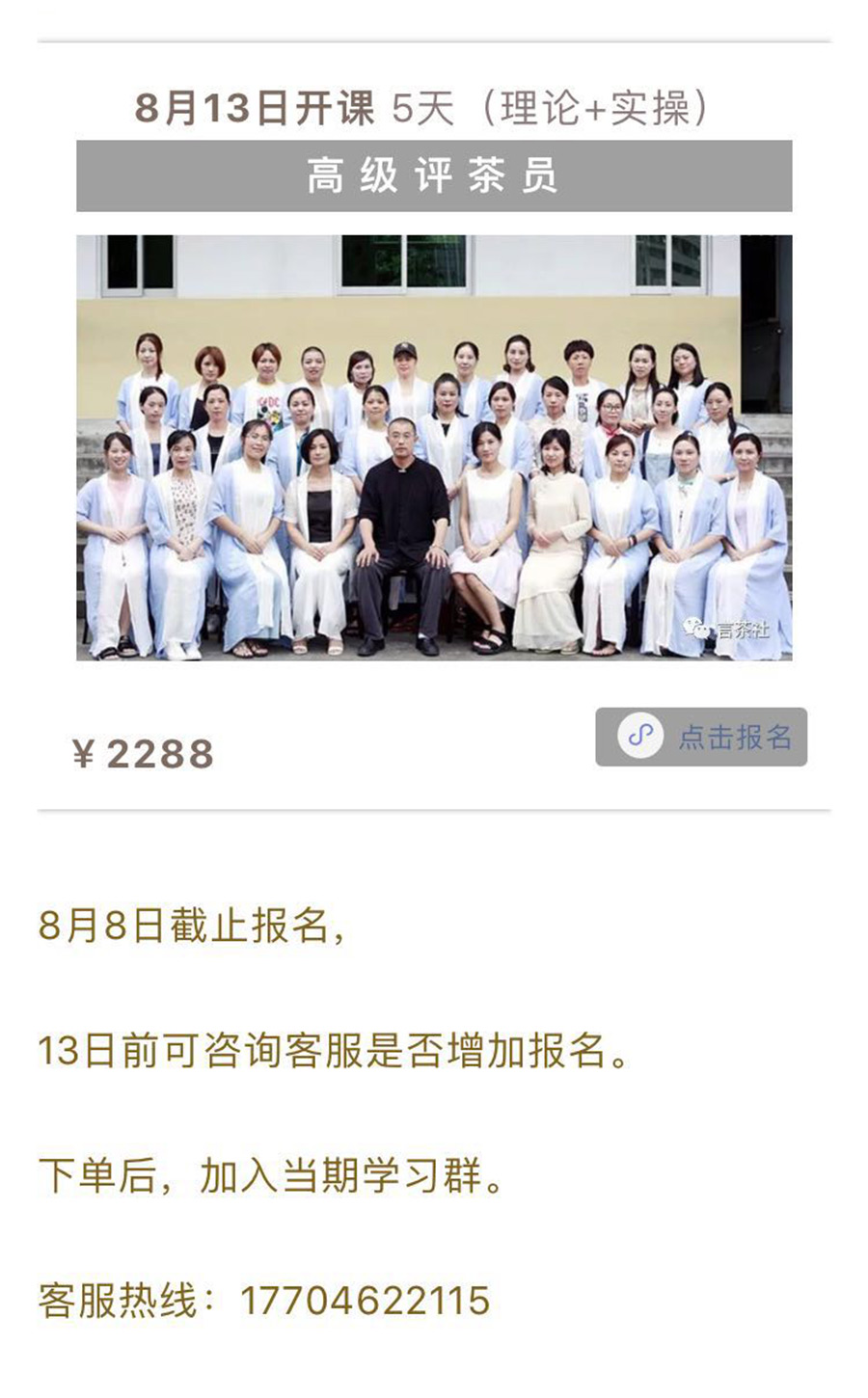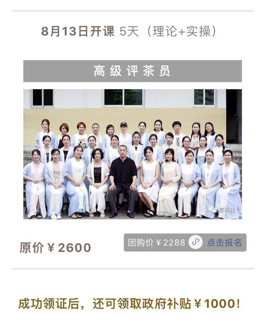 【八月13日-高级评茶员】开班啦!原价2600,通过【言茶社】报名只需2288!