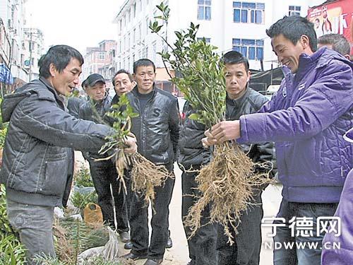 1月26日,正值春节期间,还正是人们走亲访友的时期,而且天气寒冷,然而笔者在福鼎市点头镇海乾路的临时苗木市场看到的是另一番购买果、树苗的新景象,农民朋友们成群结队来赶墟买苗,形成一派热热闹闹的村镇“苗墟”,生意红火。