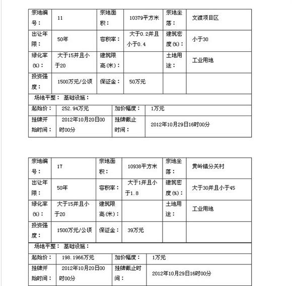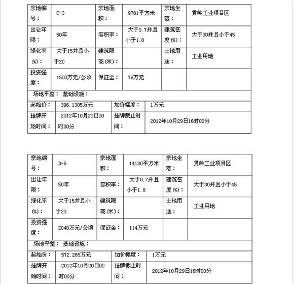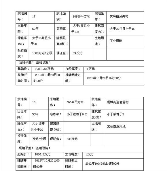 六、本次国有土地使用权挂牌活动在福鼎市国土资源局进行。各地块挂牌时间分别为: