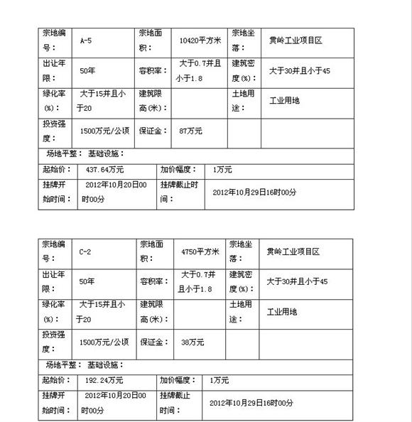 四、本次挂牌出让的详细资料和具体要求,见挂牌出让文件。申请人可于2012年09月30日至2012年10月19日到福鼎市国土资源局获取挂牌出让文件。