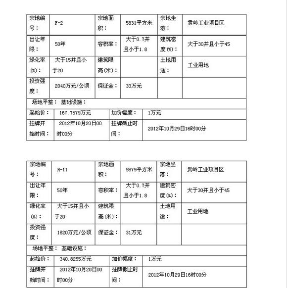 F-2号地块:2012年10月20日00时00分至2012年10月29日16时00分;