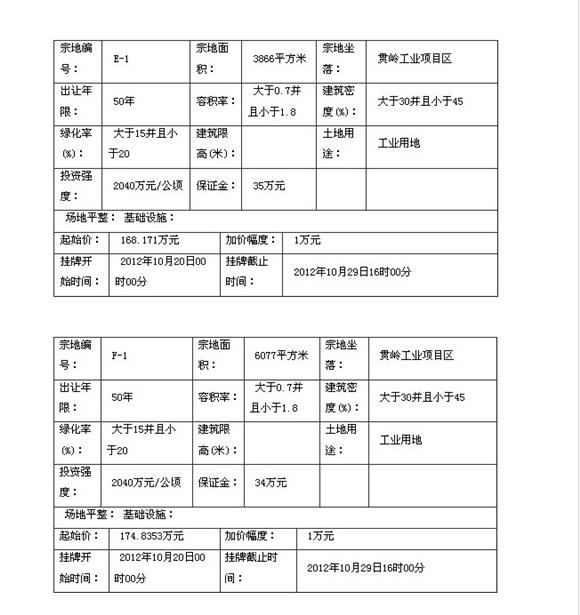 F-1号地块:2012年10月20日00时00分至2012年10月29日16时00分;