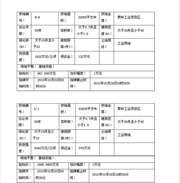 L-1号地块:2012年10月20日00时00分至2012年10月29日16时00分;