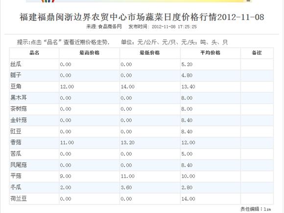 福建福鼎闽浙边界农贸中心市场蔬菜日度价格行情