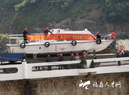 1月29日,闽东电力公司福鼎发电分公司添置的1艘新型海事巡逻快艇在福鼎桑园水库下水。这是福鼎海事局、闽东电力公司福鼎发电分公司为提高库区水上安全快速反应能力,配备的新型巡逻快艇,也是宁德市第一艘库区巡逻快艇。