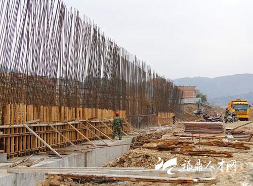 2月21日,记者走进环城北路项目施工现场看到,到处是忙碌的施工身影。几辆大型汽车正在往来装运土方和建筑材料,工人门正在浇铸斜坡式挡土墙(如图)。