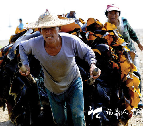 福鼎市沙埕镇小白鹭村海带丰收繁忙