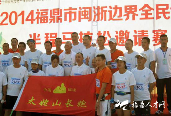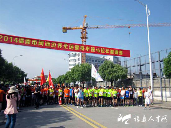 福鼎市闽浙边界全民健身半程马拉松邀请赛于5月1日上午8:30在福鼎市鼎文化公园开赛。 此次比赛由福鼎市长跑协会主办。赛事内容为半程马拉松赛(分男、女计时),主要是闽浙两省以及江西、北京长跑爱好者自愿参加,总人数500多人,参赛选手主要来自浙江瑞安、苍南、福建柘荣、福鼎、福安、宁德、泉州等地。 比赛路线为鼎文化公园(主会场)-→普后大桥-→水北坪园-→高滩-→蕉阳新村-→何坑村(折返)- →蕉阳新村-→高滩坪园-→水北慢道-→-→鼎文化公园(主会场),空气清新、山清水秀。此次比赛预备周详,比赛安保、志愿者、比赛裁判、医疗救援有条不紊。主办者将把福鼎最美好的一面展现在赛事上。来自福建南平80后选手游培泉以1小时17分勇夺桂冠。在规定时间内完成比赛者都发给成绩证书和纪念牌、福鼎特色纪念品,男子前30名和女子前15名均发给一定奖品。