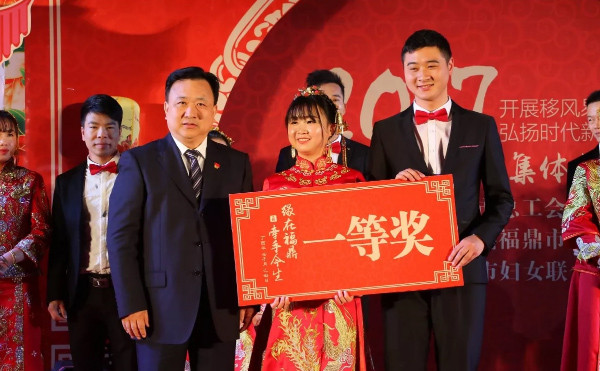 市总工会常务副主席朱爱凤介绍说,现在福鼎的婚事越办越大,给广大职工带来很大压力。举办此次集体婚礼活动是为了响应市委市政府移风易俗的号召,呼吁大家能够喜事简办,喜事新办。
