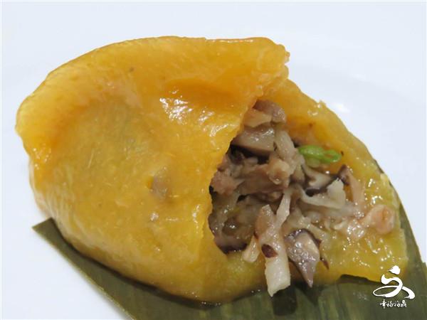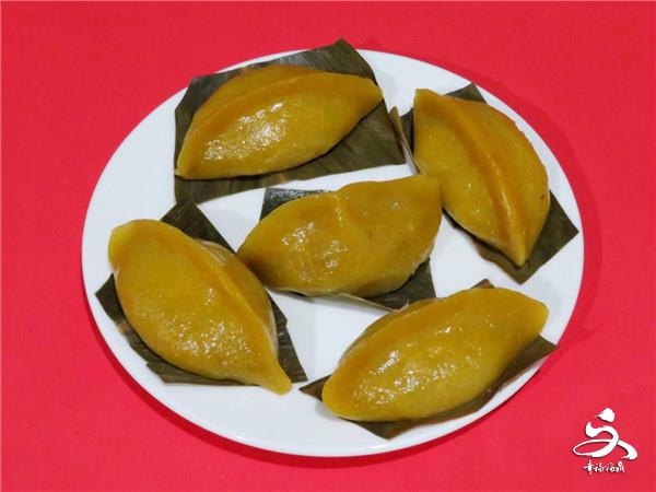 “地瓜(番薯)切皮洗净煮熟,凉后拌上番薯粉搅匀,碾成泥状做成长形饺子,放入红糖或白糖、花生仁、芝麻、葱头油等做成的甜的馅,也可以放入肉、菜、香菇等做成的咸的馅儿,再放入蒸笼里蒸上15-20分钟,便成了香喷喷的九稳包。”钟老师介绍“九稳包”做法时看似轻描淡写,实则包含十几道的工序,做起来十分复杂。皮的厚薄和馅儿的多少,都十分体现制作人的手艺。在当地,人们以能做九稳包的家庭主妇为巧妇,逢年过节都要在明里暗里比较一番。九稳包也要趁热吃,不管是甜馅儿的,还是咸馅儿的,进入你味蕾的首先就是浓浓的蒸熟的地瓜味儿,香甜可口,很有嚼劲儿。我个人偏好甜的,趁热咬上一口,葱油裹着花生仁、芝麻顺入口中,在地瓜粉的中和下,甜而不腻,百吃不厌。小时候我见过最会吃的一位亲戚,一口气能吃二三十个。