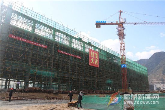 日前,在太姥山镇福鼎市第二医院(新院区)施工现场看到,该院门诊楼建设已经封顶。工人们头戴安全帽挥洒着汗水,车辆进出不停,一派热闹的施工景象。
