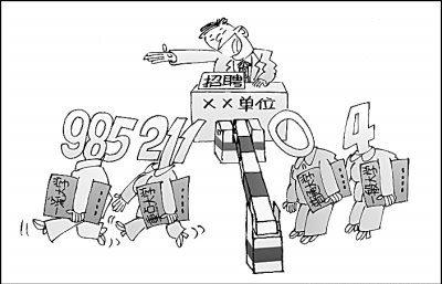 如今,在大学生就业市场上,陈达嘴里的“好出身”绝不是个新鲜词,而是很多像他一样本科就读院校不是那么光鲜的毕业生们,频频遇到的尴尬——但凡条件好些的用人单位,从高校、政府到事业单位以及国企、民企、外企,都在其招聘启事上白纸黑字地明确强调,“本科非985、211高校,不予考虑”,这种“狠挖出处”的招聘要求,也被毕业生们无奈地称作“学历查三代”。