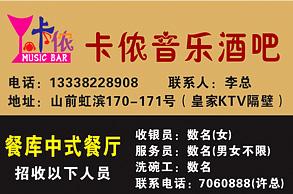卡侬音乐酒吧隆重开业,是休闲酒吧与KTV结合为一体的最新娱乐场所!地址位于山前虹滨170-171号(皇家KTV隔壁)。